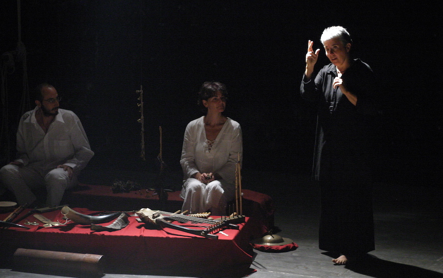 Lo spettacolo che viene sviluppato in modo orale, cioè perfezionato ogni sera attraverso l’esperienza stessa del narrare, punta sul contatto diretto con il pubblico e, intrecciando miti e timbri arcaici, a tratti in modo poetico e profondo a volte più ironico, divertente o decisamente comico, induce al risveglio di un senso d’ identità e d’appartenenza di cui sentiamo il bisogno.