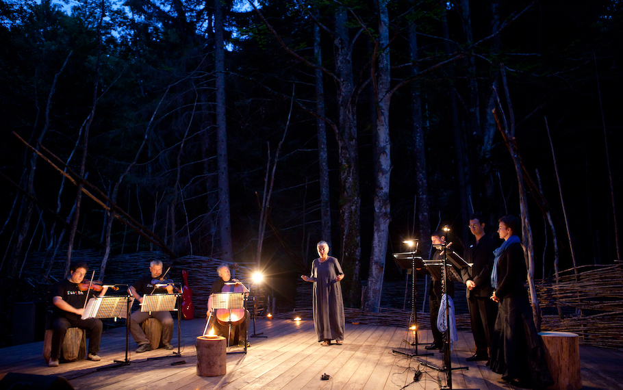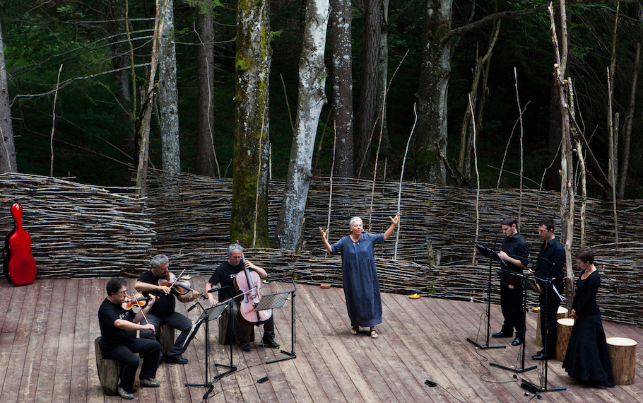 “Niobe Mater” nasce dall’incontro tra la musica di Mario Brunello, il teatro di narrazione di Sista Bramini e la ricerca che da anni con la loro arte entrambi praticano nei luoghi naturali. Lo spettacolo ha visto la luce ad Arte Sella, l’incredibile esposizione in natura di opere ed eventi artistici curata da Emanuele Montibeller e i suoi collaboratori che hanno eletto il maestro Mario Brunello loro direttore musicale e da anni invitano Sista Bramini a presentare i suoi spettacoli sia come regista che come narratrice. Il progetto sperimentale, per l’occasione intitolato Fucina Mater, è stato il crogiuolo di una messa in scena in cui lo Stabat Mater di Arvo Pärt (scelto per l’occasione da Mario Brunello) interpretato dagli straordinari strumenti di Mario Brunello, Marco Rizzi, Danilo Rossi e le voci di Marina Bartoli, Razek Francois Bitar, Alberto Allegrezza ha dialogato con il racconto teatrale Niobe che, ispirato ai miti archetipici della madre e allo Stabat di Pärt, è stato scritto, interpretato ed elaborato drammaturgicamente da Sista Bramini. Sette artisti speciali in dialogo, una fucina di creatività, un’ esperienza professionale e umana unica.