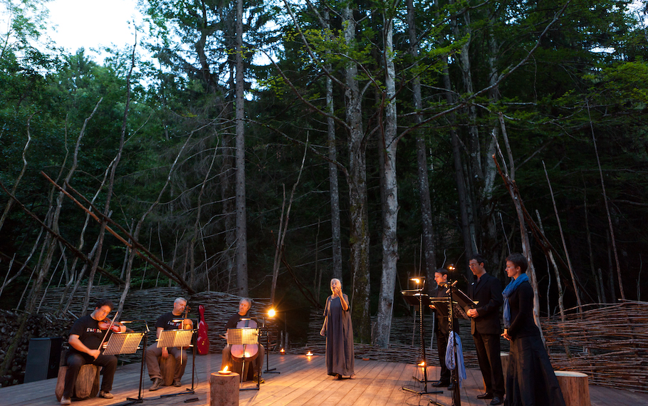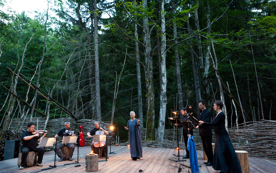 “Niobe Mater” nasce dall’incontro tra la musica di Mario Brunello, il teatro di narrazione di Sista Bramini e la ricerca che da anni con la loro arte entrambi praticano nei luoghi naturali. Lo spettacolo ha visto la luce ad Arte Sella, l’incredibile esposizione in natura di opere ed eventi artistici curata da Emanuele Montibeller e i suoi collaboratori che hanno eletto il maestro Mario Brunello loro direttore musicale e da anni invitano Sista Bramini a presentare i suoi spettacoli sia come regista che come narratrice. Il progetto sperimentale, per l’occasione intitolato Fucina Mater, è stato il crogiuolo di una messa in scena in cui lo Stabat Mater di Arvo Pärt (scelto per l’occasione da Mario Brunello) interpretato dagli straordinari strumenti di Mario Brunello, Marco Rizzi, Danilo Rossi e le voci di Marina Bartoli, Razek Francois Bitar, Alberto Allegrezza ha dialogato con il racconto teatrale Niobe che, ispirato ai miti archetipici della madre e allo Stabat di Pärt, è stato scritto, interpretato ed elaborato drammaturgicamente da Sista Bramini. Sette artisti speciali in dialogo, una fucina di creatività, un’ esperienza professionale e umana unica.